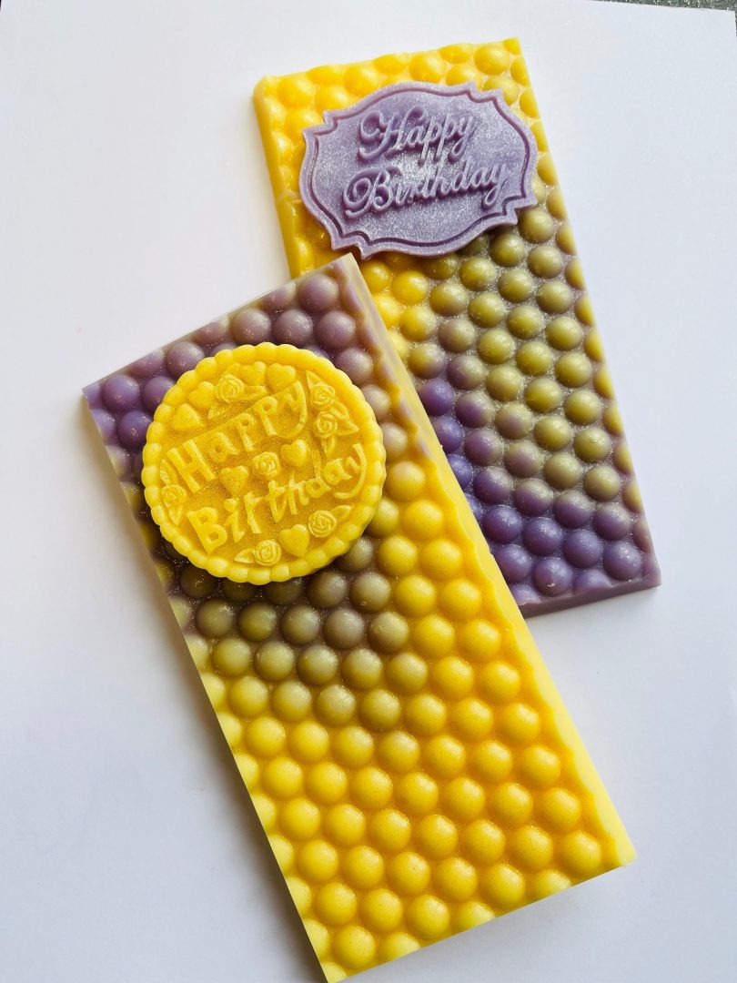 100g (Approx) Bubble Wrap Bar with Happy Birthday or Mum Logo – £5.50. These make the Perfect Gift for Lovers of Wax Melts.